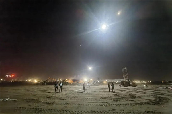 天黑,,,,滨海的气温已降至冰点周围。。。。。。。918博天堂的项目指挥部内依旧灯火通明,,,,集团董事长偏向阳亲临现场,,,,对项目建设体现高度关切,,,,并对后续各项事情睁开周密安排与安排;;;;;;;当晚,,,,作业职员迎着寒风、挑灯夜战,,,,19台挖掘机、5台推土机、3台压路机同时开展现场作业。。。。。。。