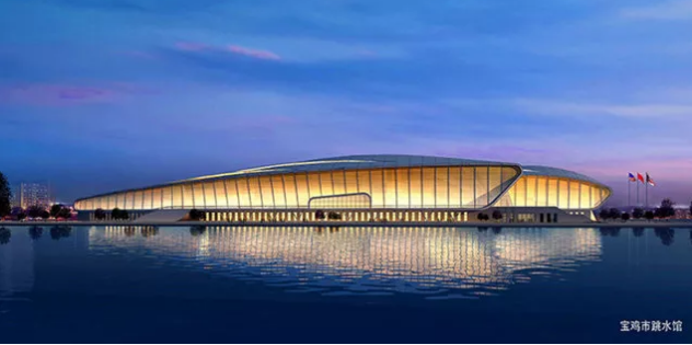 项目总修建面积为26948平方米,,,,,游泳跳水馆主体成L型,,,,,由跳水馆和游泳馆两部分组成,,,,,外轮廓为不规则的弧线形式的曲面多边形。。。。项目是宝鸡市建设的重点社会公益类项目,,,,,并荣获过2014年度中国修建钢结构行业工程质量的最高声誉奖“中国修建工程钢结构金奖”。。。。