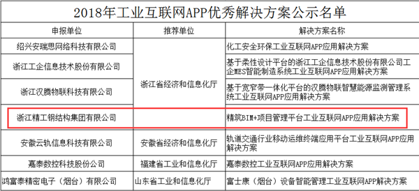克日,,,,工信部宣布了“2018年工业互联网APP优异解决计划名单”,,,,918博天堂钢构自主研发的“精筑BIM+项目治理平台工业互联网APP应用解决计划”乐成入选。。。。