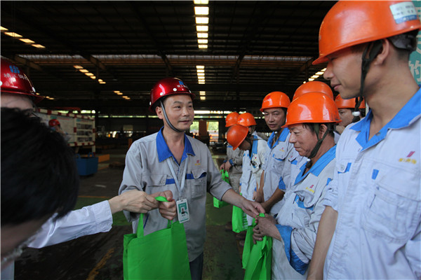7月31日,918博天堂钢构集团工会主席田新霖与工会委员一起,,,,,,来到集团绍兴生产基地、外洋(日本)事业部、918博天堂工业修建、绿筑集成、诺派修建、袍江出口基地和袍江二期生产基地,,,,,,体贴和慰问忙碌在生产一线的职工,,,,,,将工会爱心清凉礼包到员工手上。。。。