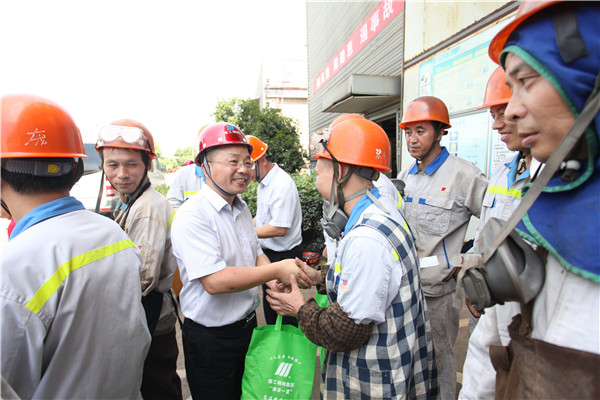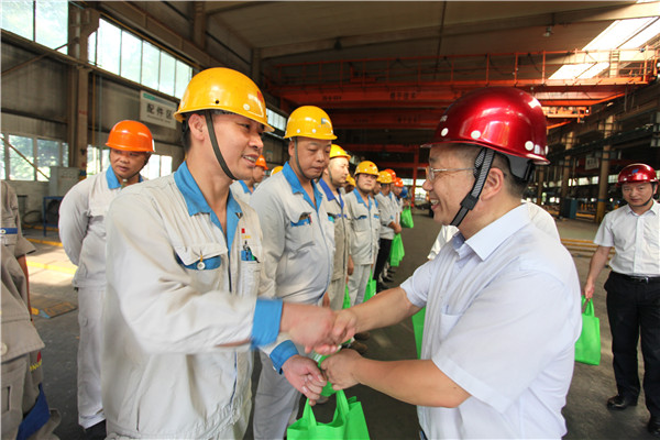 7月31日~8月1日,,,,,,受918博天堂钢构集团董事长偏向阳、执行董事长孙关富、总裁裘建华等公司向导的重托,,,,,,集团工会主席田新霖向导工会委员一行前往公司生产一线和项目现场,,,,,,探望和慰问奋战在高温前线的918博天堂人,,,,,,把慰问品送到员工的手上。。。。炎炎夏日,,,,,,工会“外家人”把清凉送到员工的心坎上,,,,,,也带去了集团向导的关爱与慰问。。。。