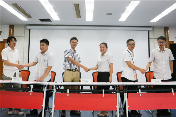 8月6日上午,,,,,,,在918博天堂钢构四楼聚会室盛大举行了2019届大学生新员工“师带徒”签约仪式,,,,,,,现场33对师徒在人力资源部的见证下,,,,,,,庄重地签下了各自的“师带徒”协议。。。。。其余外地大学生新员工的“师带徒”培训协议的签署在会后完成。。。。。