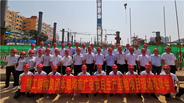 8月17日,,,,,,,工程中心组织开展湖南卫视项目施工现场观摩交流会,,,,,,,918博天堂钢构总裁潘吉人,,,,,,,918博天堂钢构总裁助理兼绍兴生产基地总司理金敏翔,,,,,,,工程中心总监邓良波,,,,,,,工程中心主管、各项目司理等加入交流会。。。。